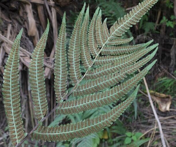 介绍:根状茎横走,连同叶柄基部有深棕色披针形鳞片。叶近生;叶柄长达约40厘米,深禾秆色,略有柔毛;叶片革质,矩圆状披针形,长约35厘米,宽13-20厘米,二回羽裂。