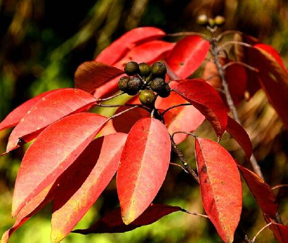 介绍:乔木或灌木,高3-12米,罕有达20米者,各部均无毛;小枝灰褐色,有皮孔。叶互生,纸质,嫩时呈淡红色,叶片椭圆形或长卵形,长4-10厘米,宽2.5-5厘米,顶端钝或短渐尖,基部短狭或楔形,背面近缘常有数个圆形的腺体;中脉在两面均凸起,于背面尤著,侧脉纤细,8-12对,互生或有时近对生,略呈弧状上升,离缘1-2毫米弯拱网结,网脉很柔弱,通常明显;叶柄纤细,长2-7.5厘米,顶端具2毗连的腺体;托叶小,近卵形,长约1毫米,易脱落。花单性,雌雄同株,密集成长4-9厘米的顶生总状花序,雌花生于花序轴下部,雄花生于花序轴上部或有时整个花序全为雄花。雄花:花梗丝状,长1-3毫米;苞片卵形,长约1.5毫米,宽近1毫米,顶端锐尖,基部两侧各具一长圆形或肾形,长约2毫米宽近1毫米的腺体,每一苞片内有5-7朵花;小苞片小,狭,长1-1.2毫米;花萼杯状,具不整齐的裂齿;雄蕊2枚,少有3枚,花丝短,花药球形。雌花:花梗粗壮,圆柱形,长约5毫米;苞片几与雄花的相似,每一苞片内仅有1朵花;花萼3深裂几达基部,裂片三角形,长1.8-2毫米,宽约1.2毫米,顶端短尖,边缘有疏细齿;子房卵形,3室,花柱粗壮,柱头3,外反。蒴果黑色,球形,直径1-1.5厘米,分果爿脱落后而中轴宿存,种子近球形,长4-5毫米,直径3-4毫米,外薄被蜡质的假种皮。花期4-6月。
