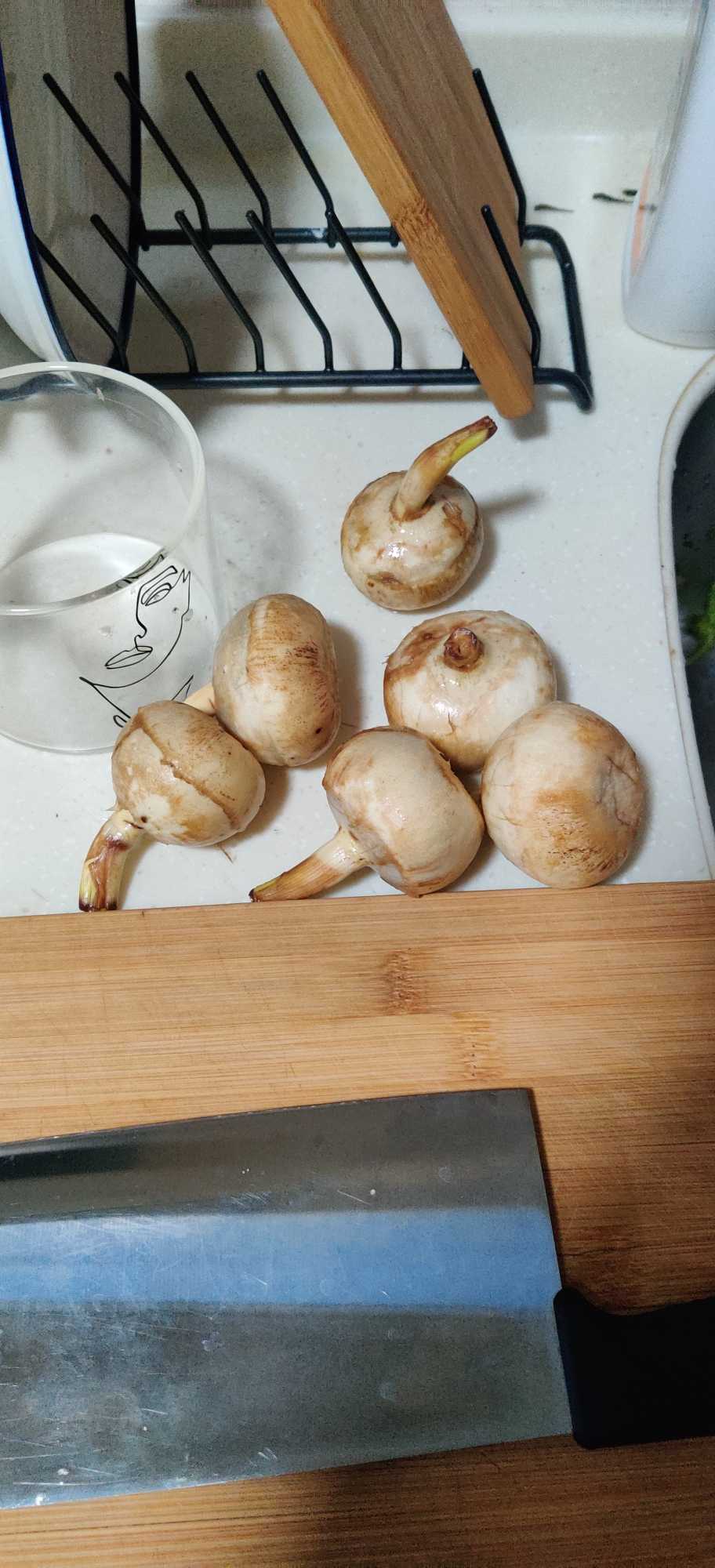 百科:多年生草本植物,生在水田里,叶子像箭头,开白花。地下有球茎,黄白色或青白色,以球茎作蔬菜食用。可以吃。也作茨菰。