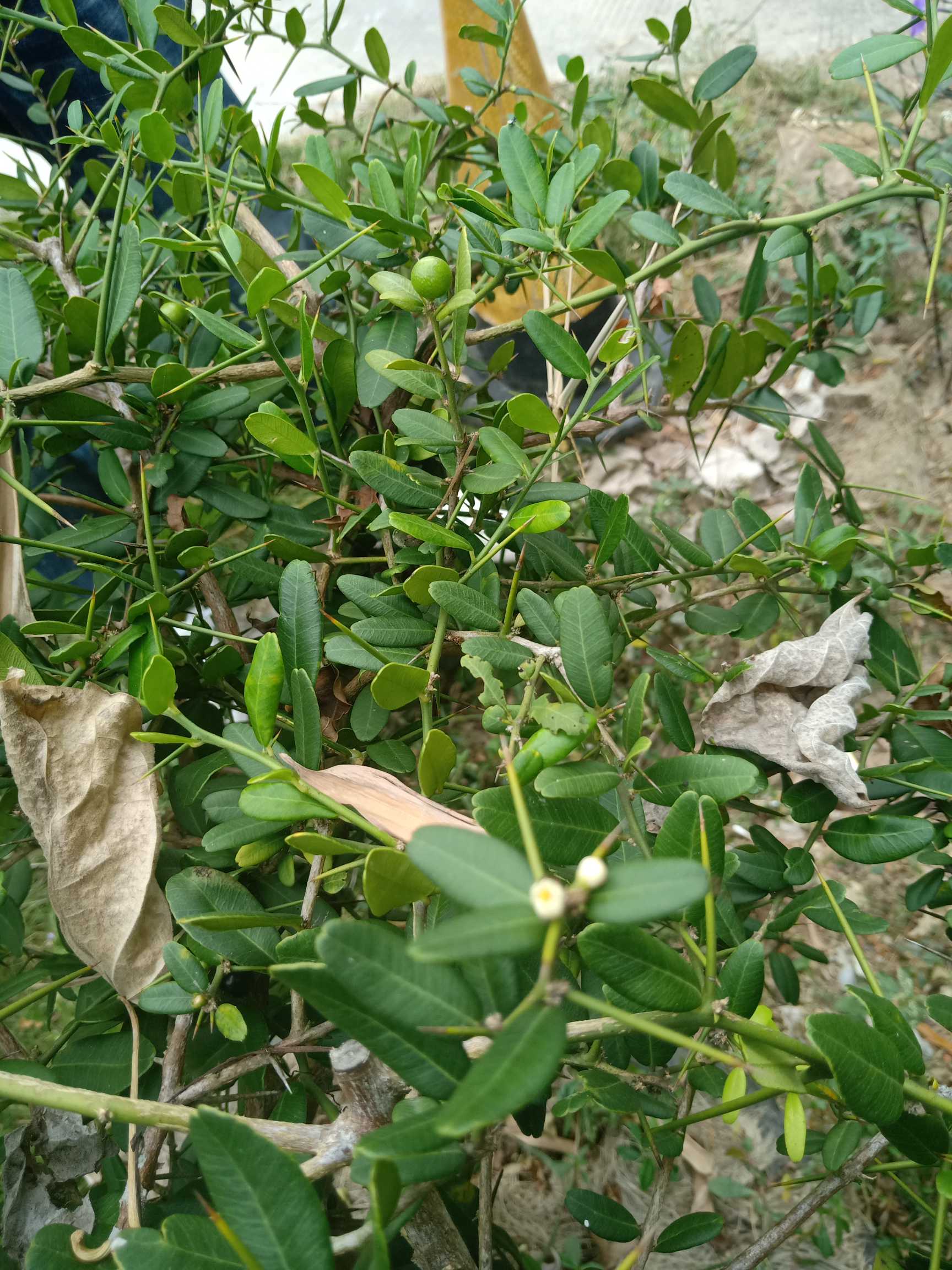 介绍:高达2.5米的灌木。分枝多,下部枝条披垂,小枝绿色,老枝灰褐色,节间稍扁平,刺多,劲直,长达4厘米,顶端红褐色,很少近于无刺。叶硬革质,有柑橘叶香气,叶面暗绿,叶背线绿色,卵形,倒卵形,椭圆形或近圆形,长2-6、很少达10厘米,宽1-5厘米,顶端圆或钝,微或明显凹入,中脉在叶面稍凸起,侧脉多,彼此近于平行,叶缘有弧形边脉,油点多;叶柄长1-7毫米,粗壮。