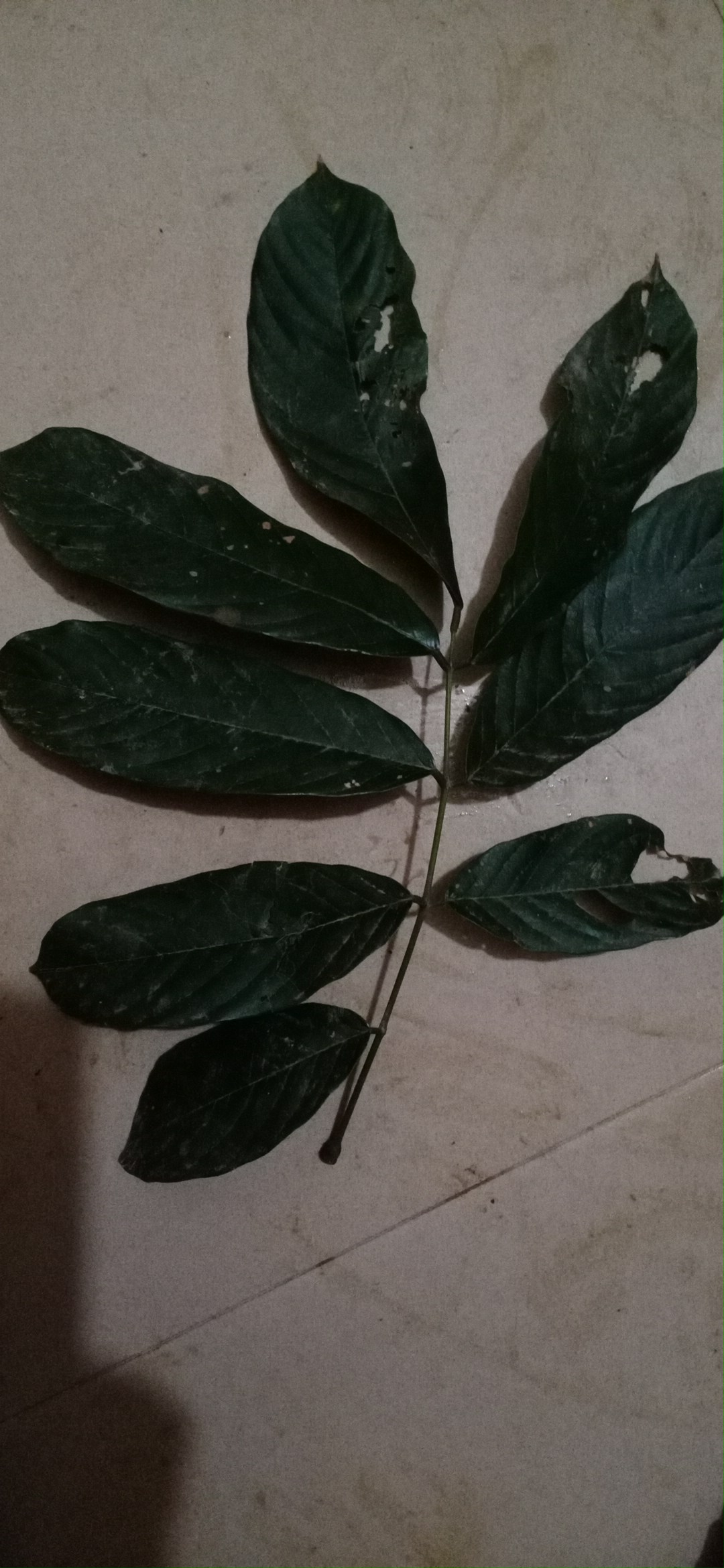 叶互生,叶轴和叶柄圆柱形,无毛,长15-60厘米或更长;小叶6-16,近对生或互生,顶端2对小叶对生,长圆形或长圆状椭圆形,下部小叶卵形,长7-17厘米,宽3-6厘米,先端短渐尖或急尖,基部宽楔形或略圆形,稍不对称,叶面深绿色,背面苍绿色,侧脉9-14对,干后两面稍突起,全缘;小叶柄长5-10毫米。