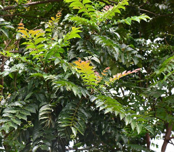 介绍:高达38m,胸径1.7m,树冠卵形。树干通直,树皮灰褐色;小枝赤褐色,具白色皮孔。偶数羽状复叶互生,小叶10-18片,互生,卵形至矩圆状披针形,长7-12cm,全缘。顶生圆锥花序,花黄色带紫,花期5-6月。蒴果近球形,灰褐色,10月至翌年2月果熟。