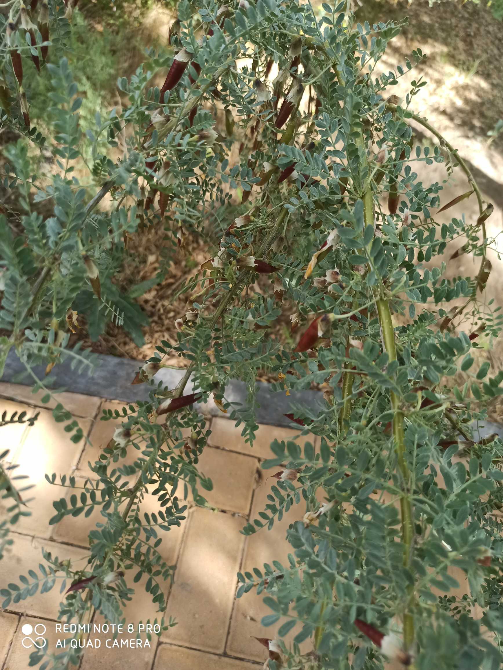 多年生草本,高50~80厘米。主根深长,棒状,稍带木质。茎直立,上部多分枝,光滑或多少被毛。单数羽状复叶互生;小叶6~13对,小叶片椭圆形、长椭圆形或长卵圆形,长5~23毫米,宽3~10毫米,先端钝尖,截形或具短尖头,全缘,上面光滑或疏被毛,下面多少被白色长柔毛;托叶披针形或三角形。总状花序腋生,具花5~22朵,排列疏松;苞片线状披针形;小花梗被黑色硬毛;花萼钟形,萼齿5,甚短,被黑色短毛或仅在萼齿边缘被有黑色柔毛;花冠淡黄色,蝶形,长约16毫米,旗瓣长圆状倒卵形,先端微凹,翼瓣和龙骨瓣均有长爪,基部长柄状;雄蕊10,2体;子房被疏柔毛,子房柄长,花柱无毛。荚果膜质,膨胀,半卵圆形,长2~2.5厘米,直径0.9~1.2厘米,先端尖刺状,被黑色短毛。种子5~6粒,黑色、肾形。花期6~7月。∑?~9月。