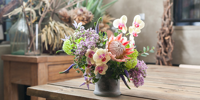 南希以大胆、印象主义的花卉和大型集装箱花