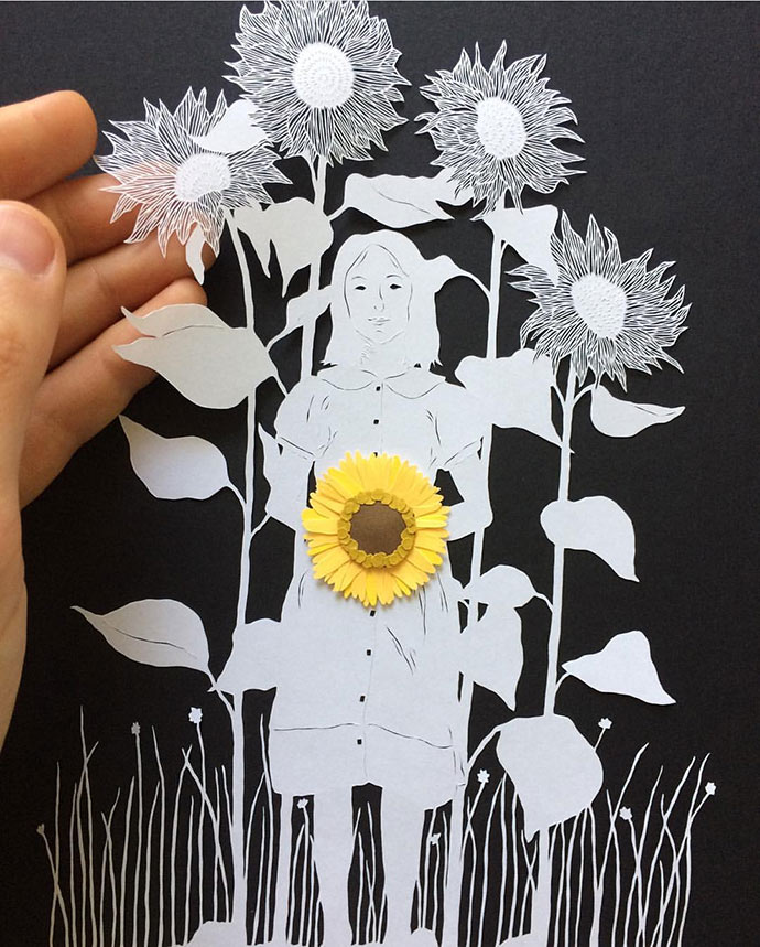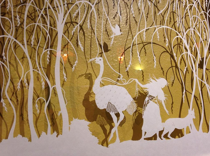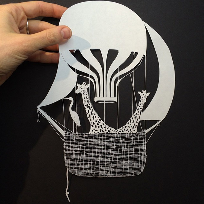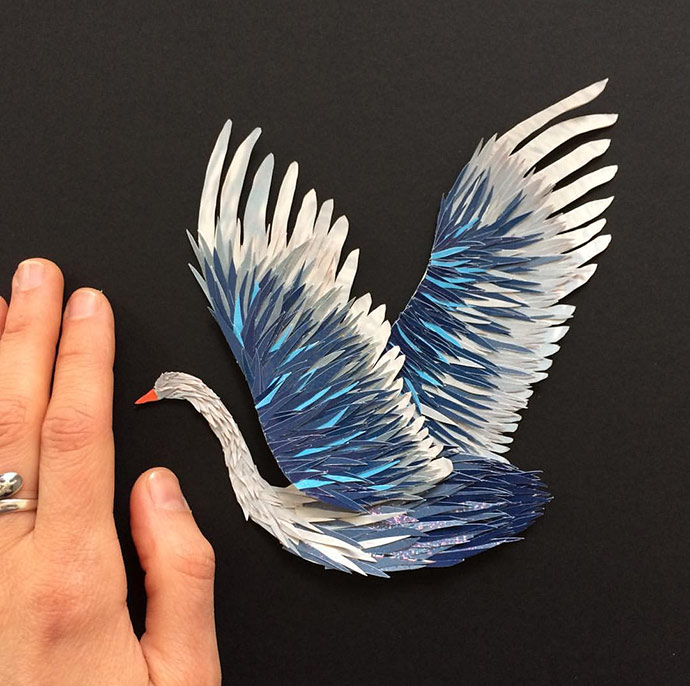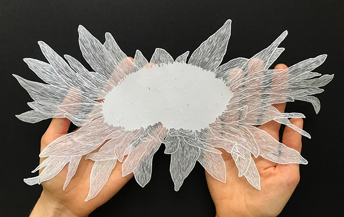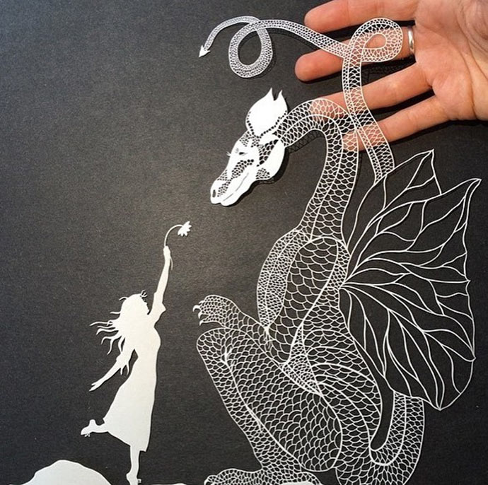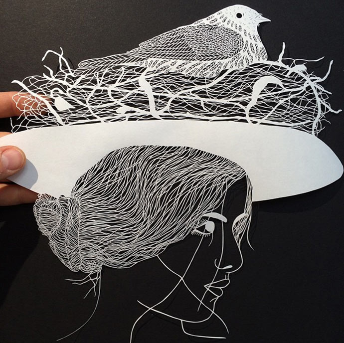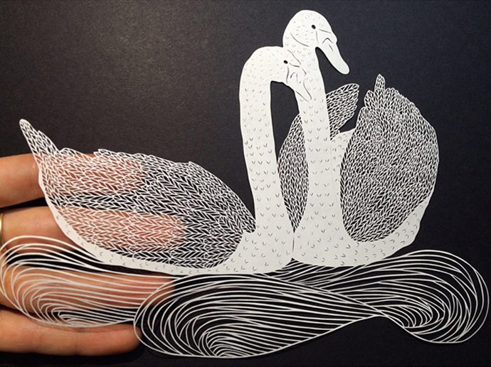 纸雕,是用传统或者创意的技艺将纸加工成工艺品的一种工艺。来自美国的maude white是非常特别的纸雕艺术家,与大部分纸雕艺术家不同的是,她在二维空间上,仅仅用到的是刻刀和白纸,作品在深色背景上展示栩栩如生,富有生命力。