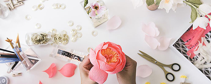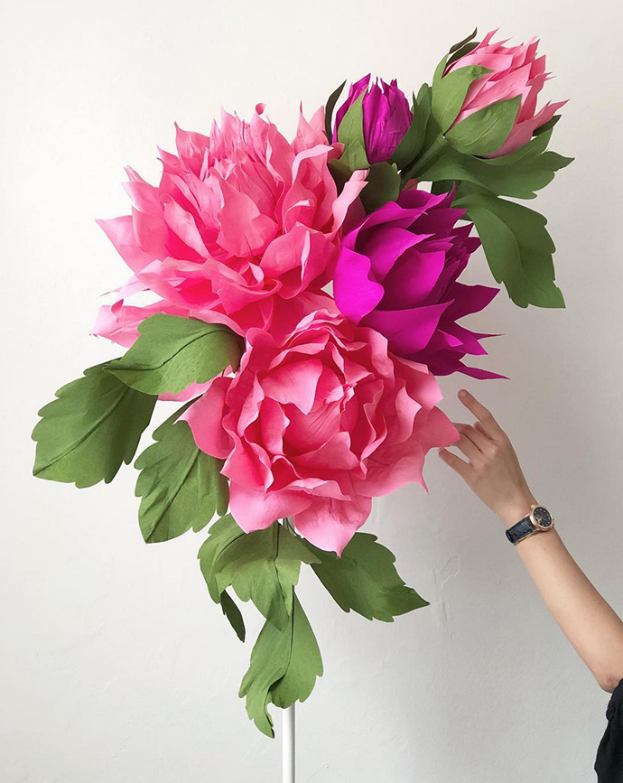 等作品积累得越来越多,Jennifer成功举办了自己的纸质花艺展览,之后她决定将这门手艺变成自己的事业,创办公司和网络商店,为客人提供定制的纸质花艺作品和头饰等。