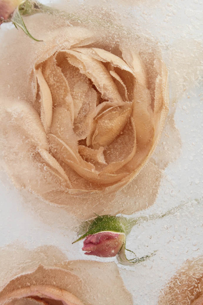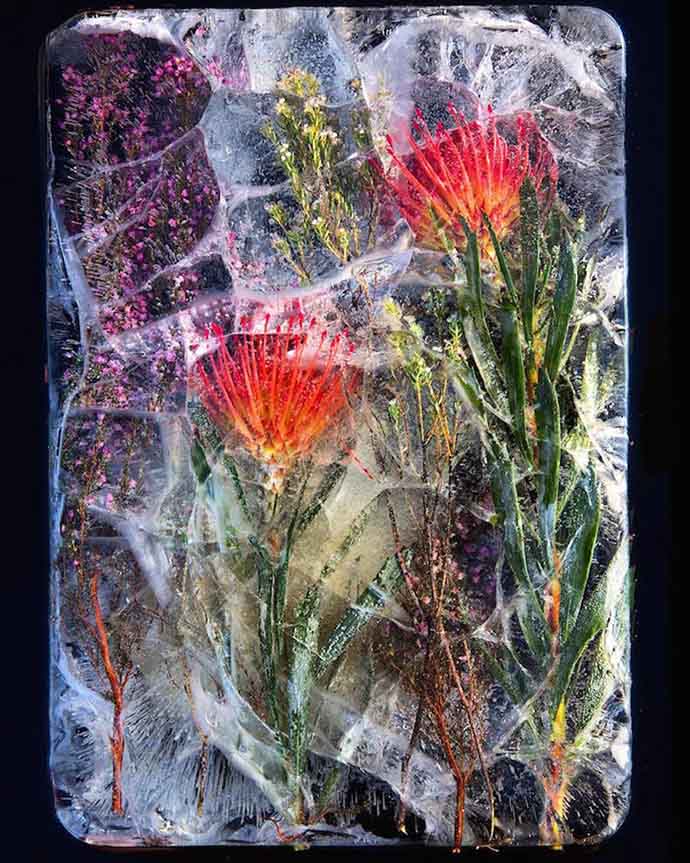 该作品是摄影师Bruce Boyd与艺术家Tharien Smith的合作作品,他们发现冰块在发挥保存作用的同时,能够加强或者扭曲保存物体的美感。于是,他们利用冰作为容器与介质,盛放与展现鲜花有趣而忧郁的美丽。
