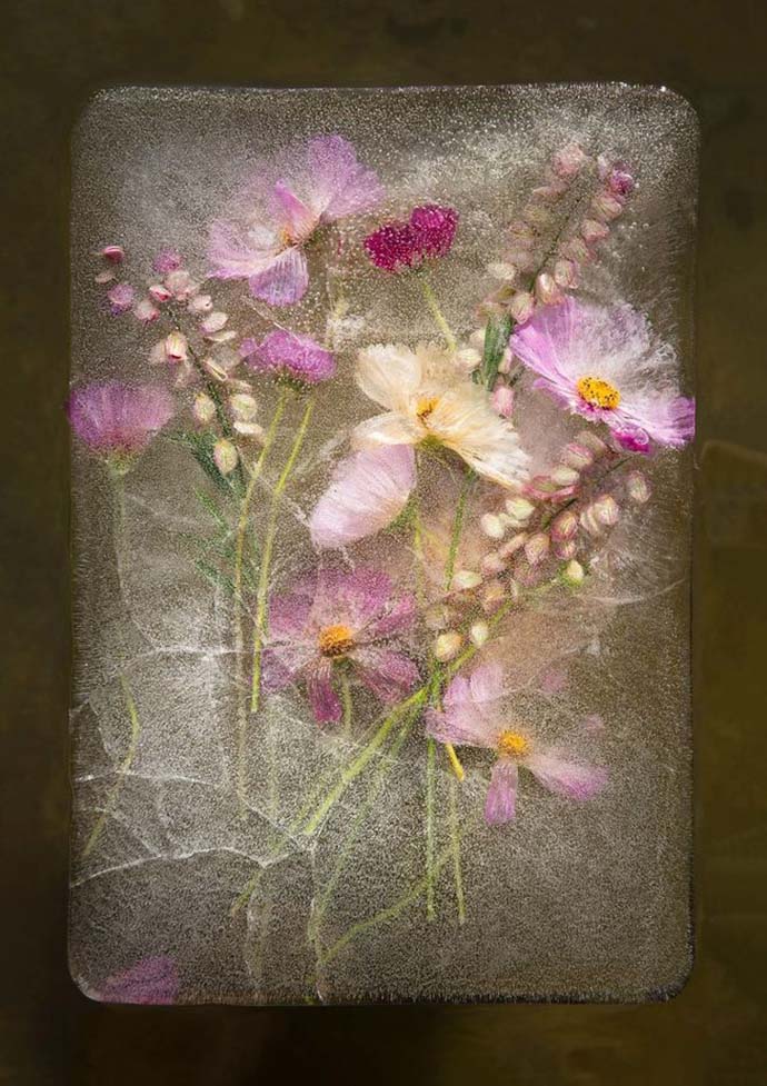 “Blooms and ice are temporary; the photograph becomes the permanent art object – the record that they once briefly existed.”