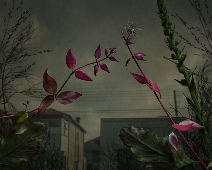 在这组名为植物调查的作品中,摄影师Daniel Shipp将城市中不起眼的植物搜集起来,为它们搭建了精密的实景模型,将植物置于虚构的自然空间内,结合早期电影中采用的视觉特效技术,拍摄出极具戏剧性的作品。
