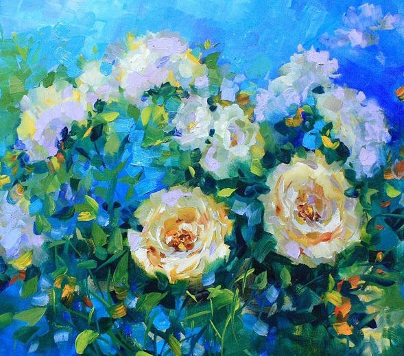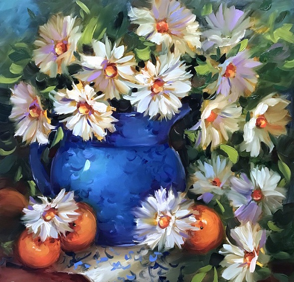 11英尺高的向日葵茎下。南希在伦敦大学、切尔西国王学院学习艺术史和插图,在德克萨斯A &M大学学习油画和色彩理论。如今,她与丈夫和他们的3只帕格一起住在得克萨斯州的花岗,她每天在花岗艺术工作室画画。