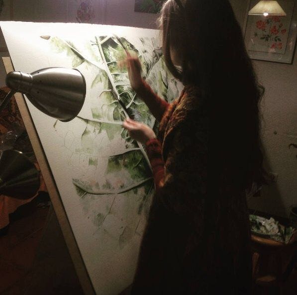 除了画叶子,Inky Leaves也是一个非常优秀的全职插画艺术家,在对叶子进行创作期间,她走遍了很多个国家去找寻各种各样的植物标本,并且每次在作画前她都会进行大量的细致观察,因为她相信一个好的画面不仅要靠视觉,还要结合触摸,声音,气味多方面的感受,人们必须意识到 所有这些元素 为了刻画和描述植物,植物生长的空间,地上和地下。
