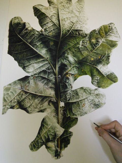 Inky Leaves笔下的叶子远观立体十足,近观更加逼真,因为叶子的细节之处,包括叶子的纤维纹路、斑驳之处、自然褶皱都无比的真实。