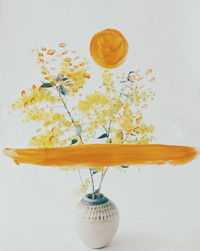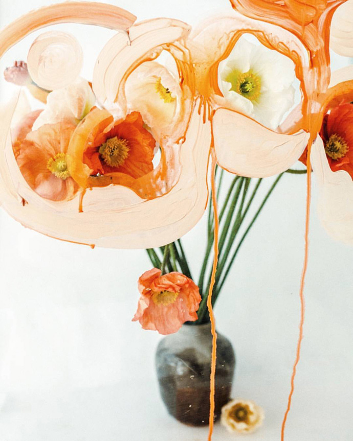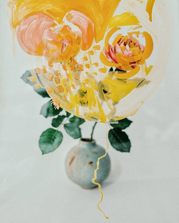 除了拍摄水中花的Flotsam系列,Lisa Sorgini还尝试将花朵与更多种类的元素结合,比如与颜料的结合。