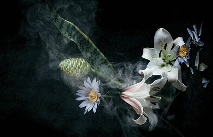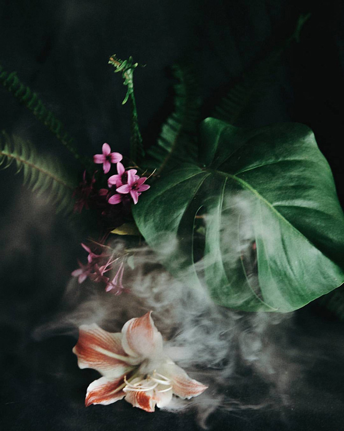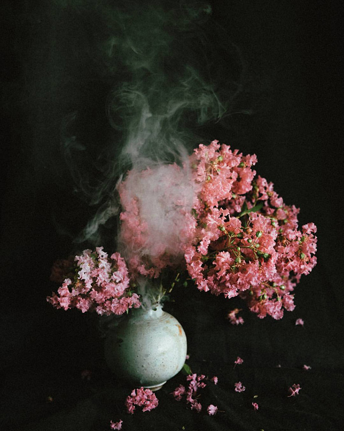 再比如下面的照片,Lisa Sorgini将花朵置于烟雾中。