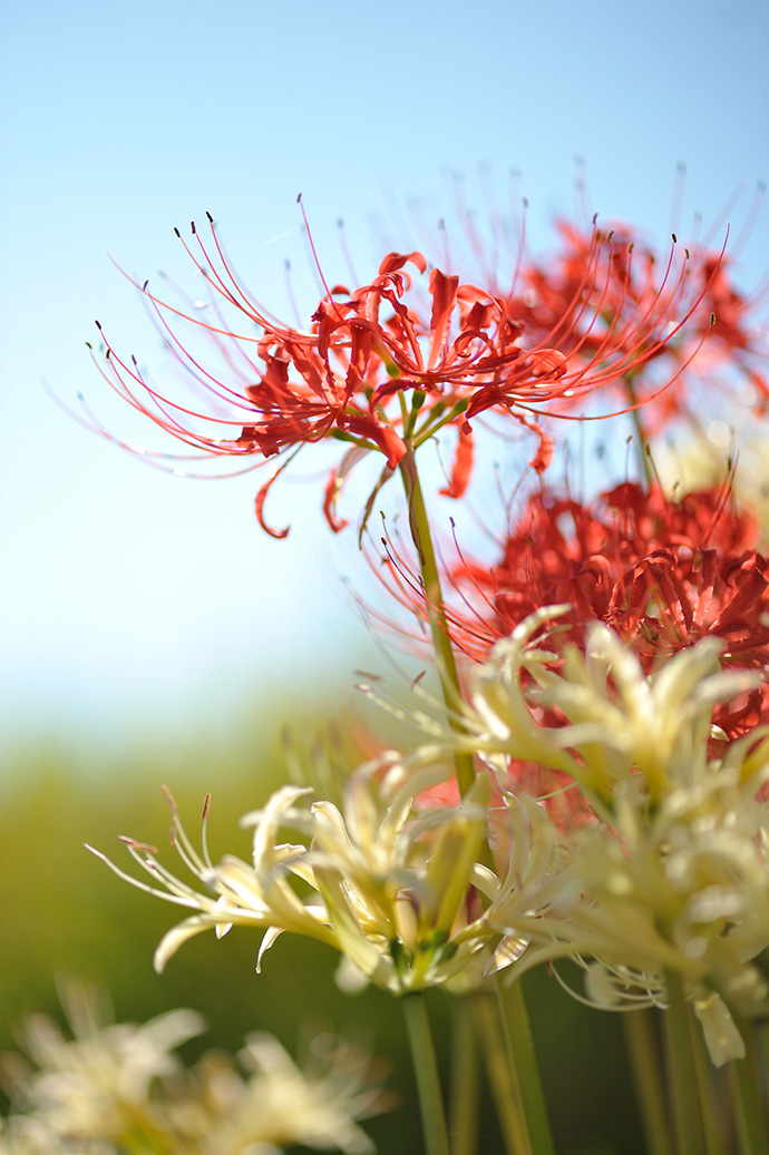 彼岸花又叫曼珠沙华,由于花和叶子不能见面的特性,所以花语意为“相互思念”,虽然它观赏性较强,但根茎有毒,尤其球根含有生物碱,能引起呕吐、痉挛等症状,所以外出看到这些花时,千万不要随意触碰。
