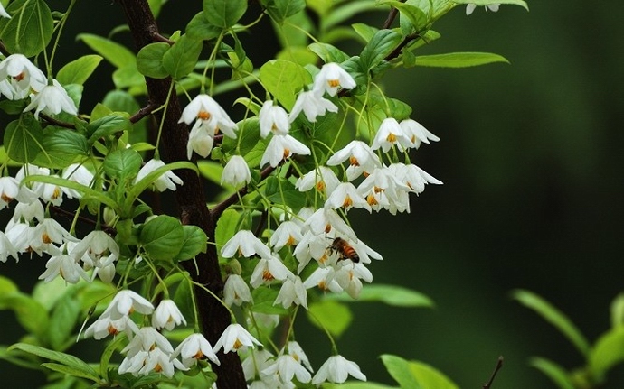 秤锤树4月花期过后,会结出秤锤一般的果实,冬天树叶落尽,一个个小秤锤随风摆动,如姑娘的耳坠一般。