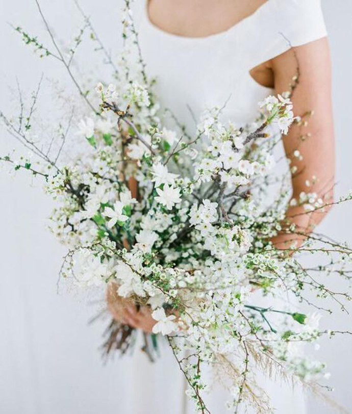 皑皑白雪开满枝头,一股冬日里的浪漫气息扑面而来。雪柳纤长柔和,穿插在花束中能够呈现出更丰富的层次感,视觉上更加曼妙。