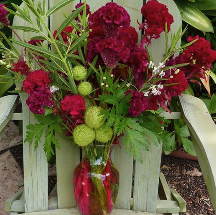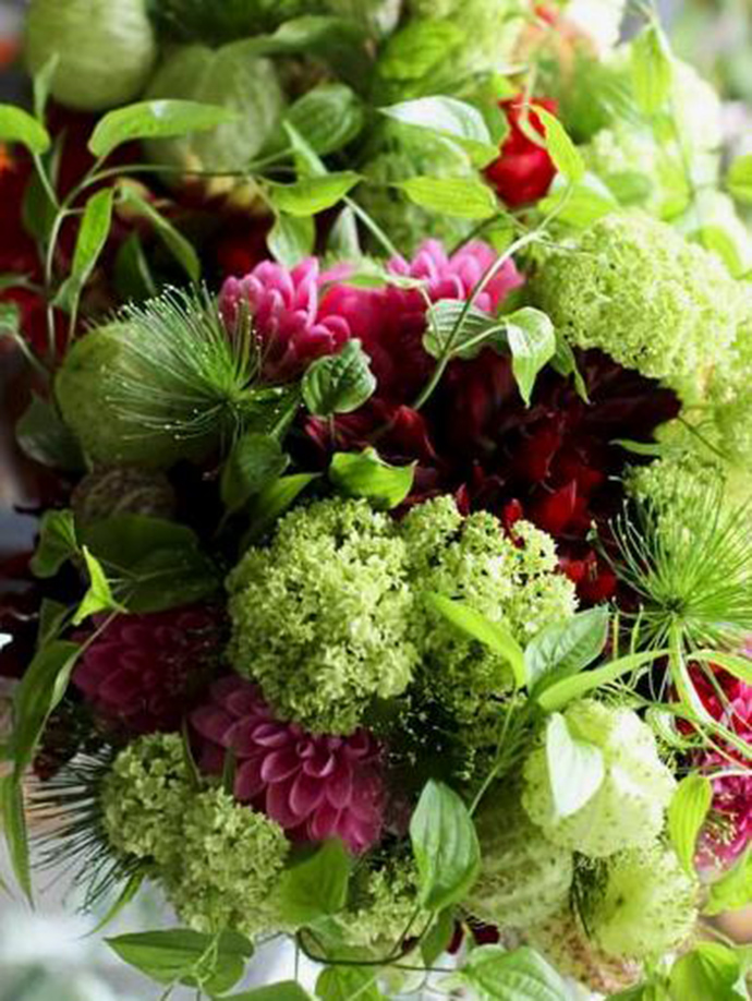 小巧可爱的风车果就像一名优雅的淑女,夹杂在颜色浓丽的花朵之中,平添一丝清新之感。