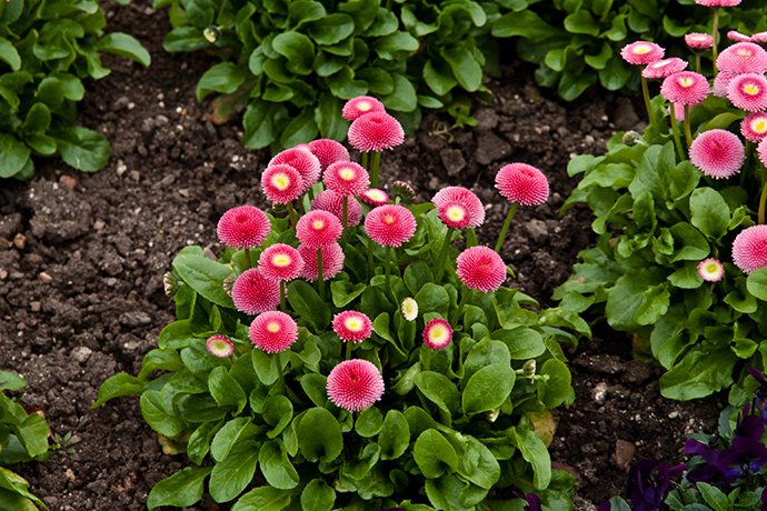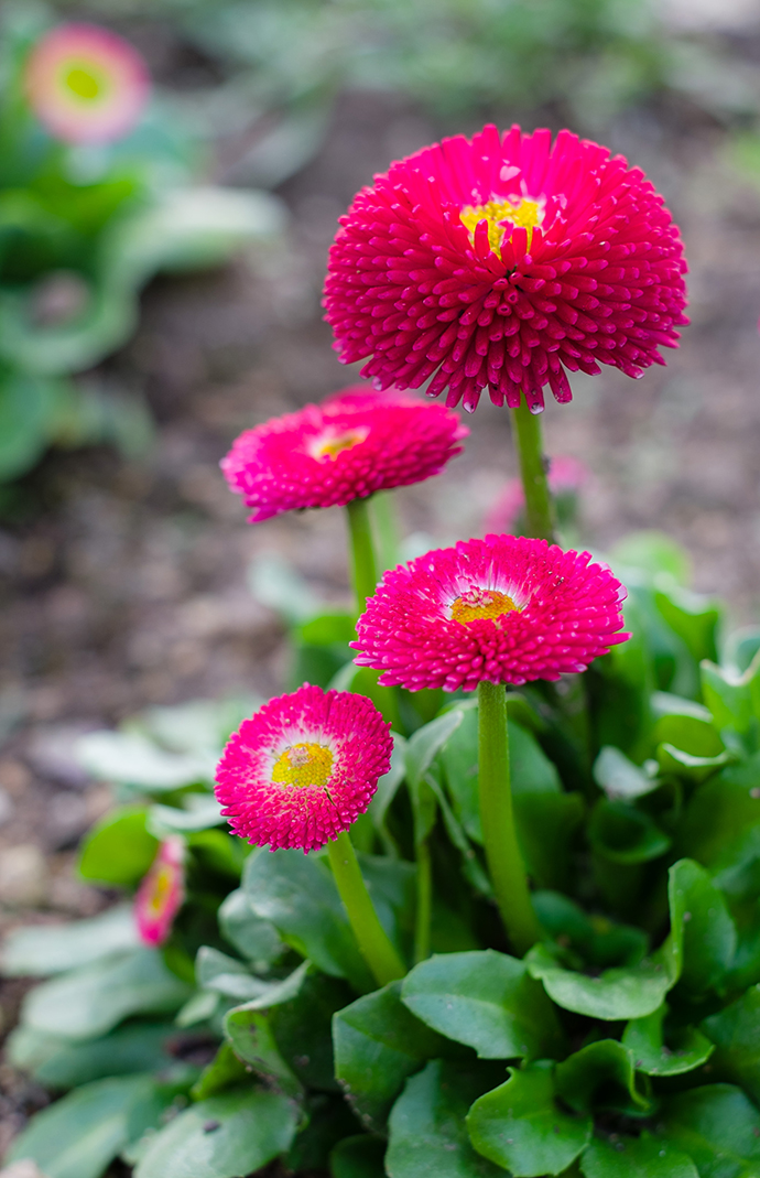 现在我们常在花市看到的就是这种粉色系重瓣的雏菊,花瓣层数多到让整个花朵变成一个可爱的半球形。