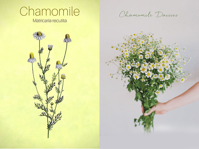 除了玛格丽特,还有一种植物的花朵跟雏菊很像,那就是洋甘菊chamomilia。洋甘菊一般都是黄心白瓣,跟白色单瓣的雏菊非常相似。