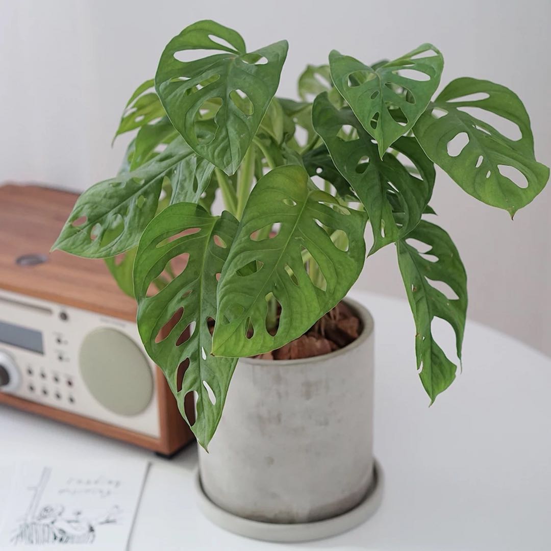 多孔龟背竹植株小巧,株形潇洒,特别是叶片上紧密排列的孔洞,犹如洞开的一个个天窗,显得特别新颖别致,优雅奇特,可爱迷人是室内绿化装饰的理想植物种类。