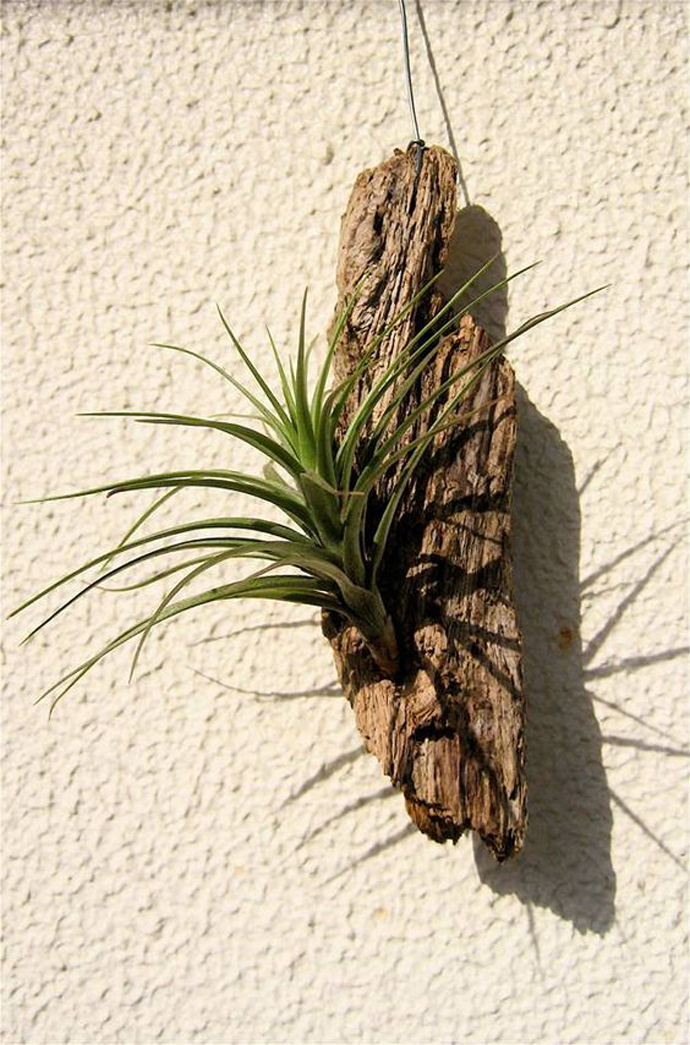既然都不需要土壤了,那么直接用一根绳子挂起来好了,简单方便易操作。动手能力强的小伙伴,还可以在绳子上多做一些小文章,比如编织一串可爱的彩带,或者在绳索末端的用枯枝装饰一下,让它看起来更加充满自然之感。