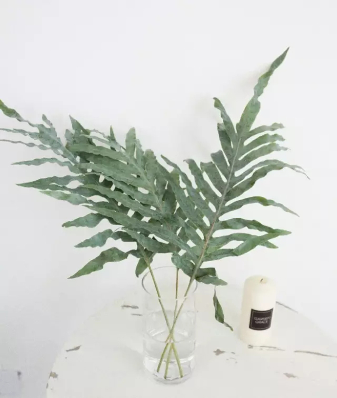 :市场上的贯众蕨大多已经是切叶植物了,瓶插观赏时,只需定期换水即可。水培期可长达2个月之久。