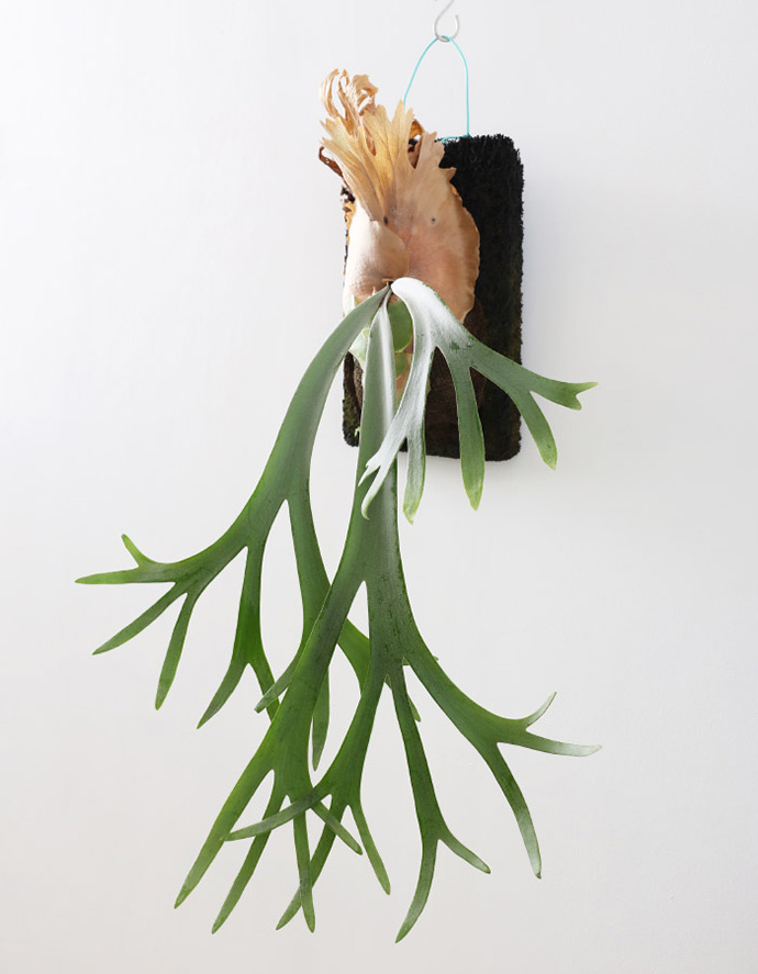 :观赏鹿角蕨的最佳方法其实是悬挂在墙上,增添自然情趣。