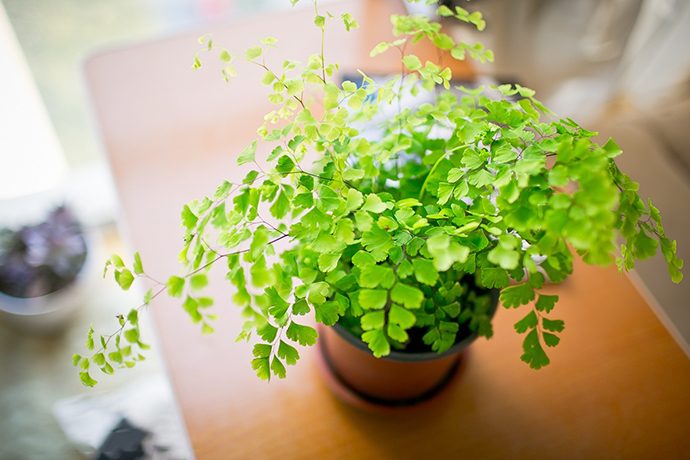 :铁线蕨畏干燥和强光,所以需要定期浇水,放到散射光处养护。生长季多喷水浇水,冬季周围环境的最低温度不得低于8℃养护即可。