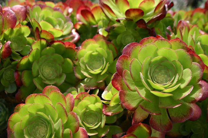 (2)加那利群岛和马德拉群岛:大西洋中的加那利群岛和马德拉群岛原由火山构成,土质肥沃。但由于附近有加那利寒流的影响,雨水不多。岛上的多肉植物主要是景天科的莲花掌属(Aeonium)、魔南景天属(Monanthes)、爱染草属(Aichryson)。这三个属共约100种植物在其他地区没有分布,属于这两群岛的特有种。此外,萝藦科的吊灯花属有部分种类分布在这儿。大戟科的墨麒麟龙舌兰科的龙血树也是这里的特产,株形高大,往往—株就形成一个独特的景观。