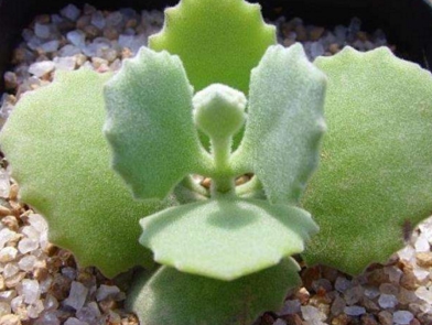 原产于原产非洲马达加斯加岛,植株的叶片非常奇特可爱,形似兔耳,故有月兔耳之称。月兔耳容易长高,易分支,叶片对生,长梭型,整个叶片及茎干密布凌乱绒毛,新叶金黄色,老叶片颜色微微黄褐色,叶片边缘着生褐色斑纹。