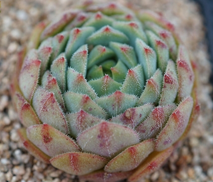 其叶面密布白色细毛,犹如糖粉,故有砂糖之名,也有叫蜜糖。中小型品种,茎直立,易分支群生,植株莲座状,叶片卵形,叶正面中间凹陷,叶背三角状凸起,叶前端渐尖、叶尖易红,叶灰蓝色到绿色,叶面密布白色细毛。