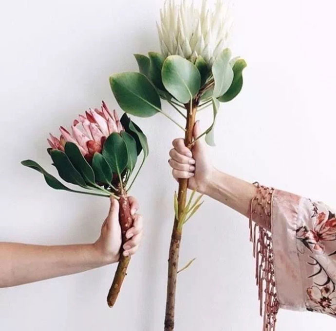 同是山龙眼科植物,偏偏有雌雄之分,真有意思!市场上看到的帝王和公主 ,形态、色彩、叶片、大小等等上各不相同,这是跟气候和环境有关的,今天顺便带大家识别一下雌雄的概念,感觉这种花是特别适合“在一起”,天生一对。