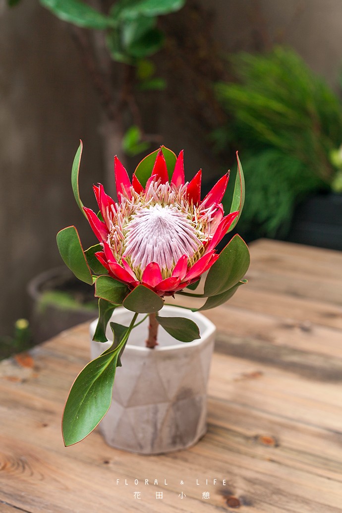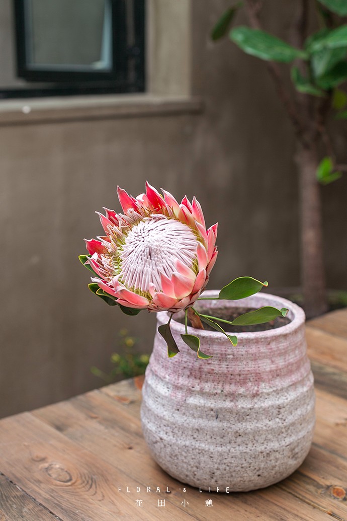帝王花是"普洛蒂亚家族"中最著名的品种,也是全世界最富贵华丽的鲜切花。粉色的帝王花有着独特的质感,随意插制在古朴的花器中,营造出“简约清雅”的日系风格。将其放置于家中的门厅、玄关、卧室等处,能让家居环境变得焕然一新。(Protea cynaroides)