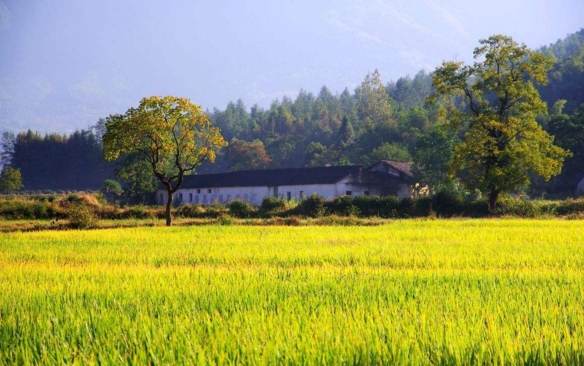 初秋的稻田,一片嫩黄色宣示着即将到来的丰收季。