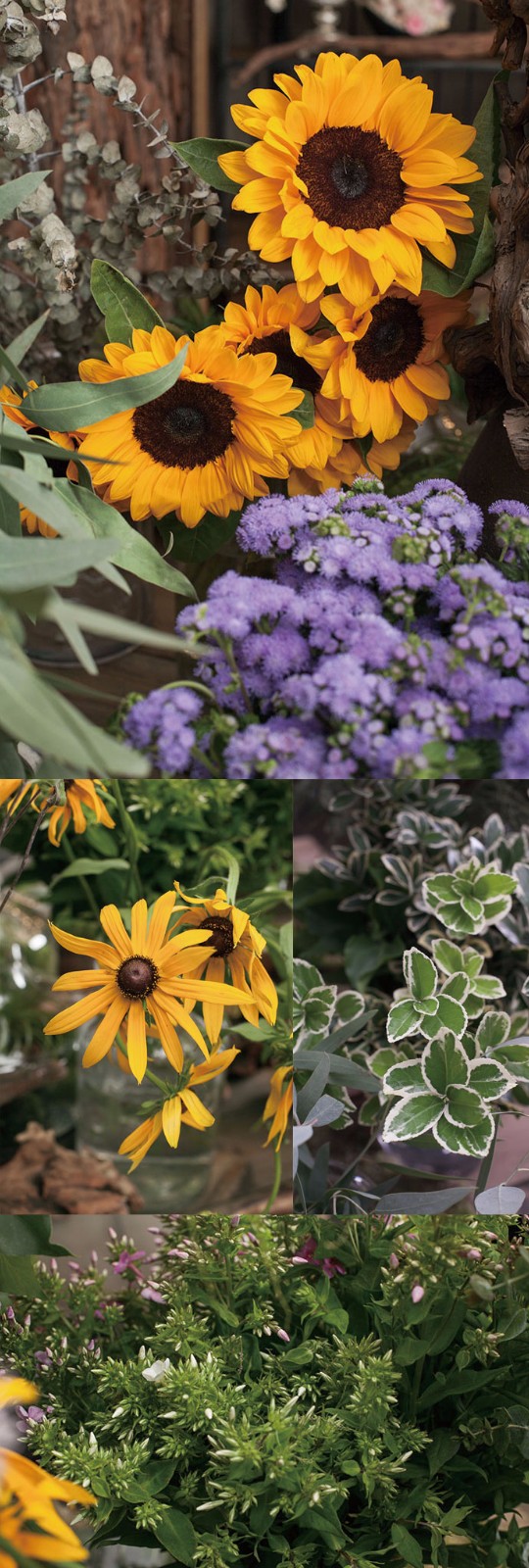 向日葵,黄杨,福禄考,藿香……他们站在一起看起来并不是很协调,正因此有了各自的与众不同的芬芳. 有时候不需要融入,做自己就很好.