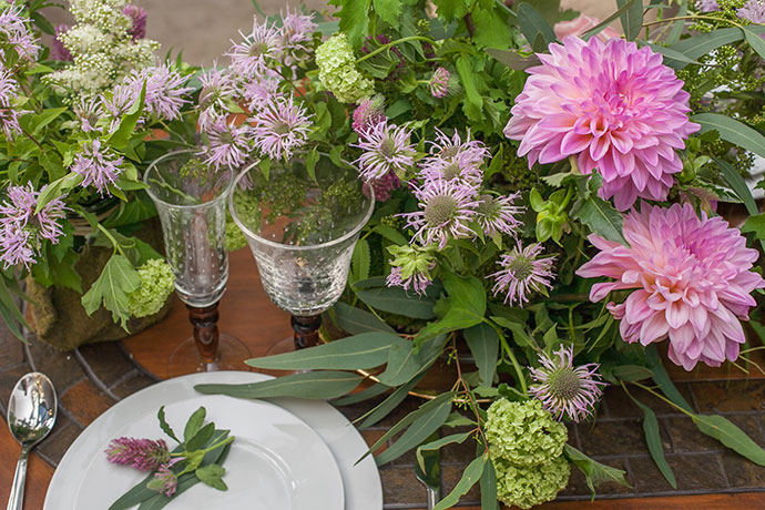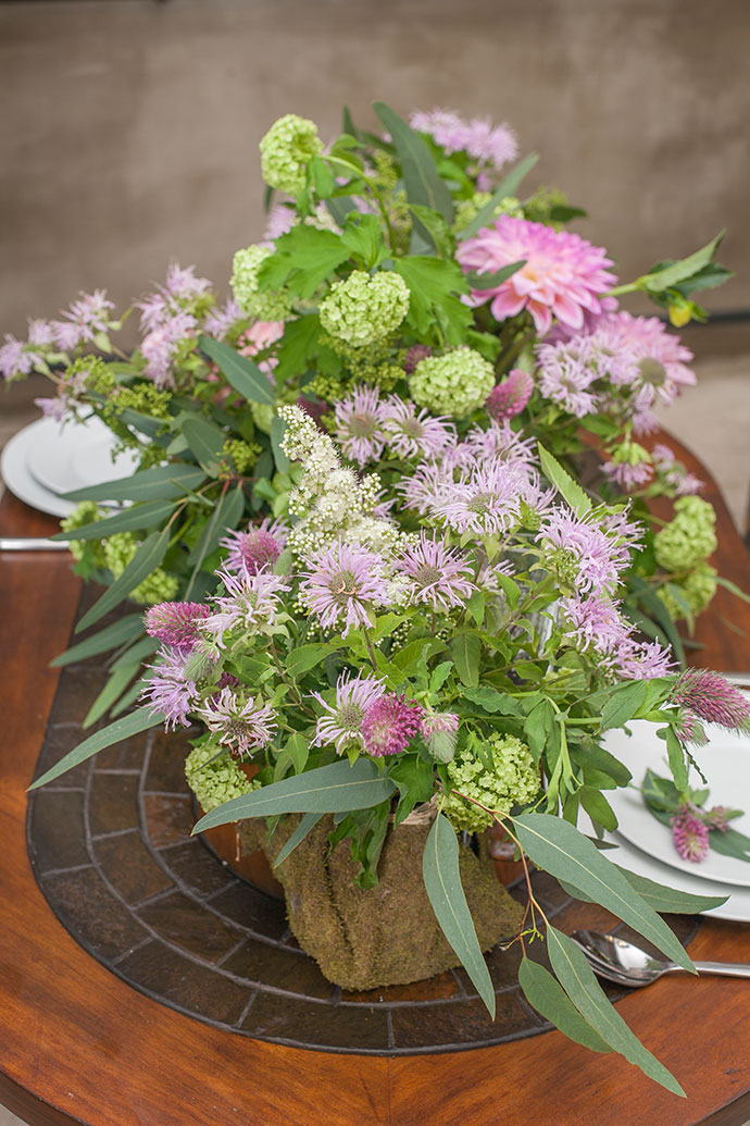 大片大片绽放的美国薄荷,晕染着聚会的快乐气氛。尤加利独树一帜的伸展,极具有美感却不会喧宾夺主。苔藓包裹着艳丽的花儿,素雅却不失色。所谓朋友一场,正如这般,她懂得她的喜乐,她明白她的悲苦。