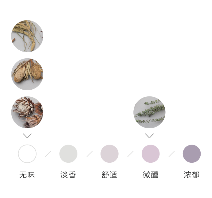 为了方便大家在花材搭配时的选择,花田小憩特设香味等级图谱,供大家在学习过程中了解更多植物的属性,以方便作品选择更适合的空间位置陈列。