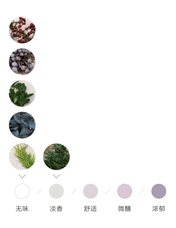 为了方便大家在花材搭配时的选择,花田小憩特设香味等级图谱,供大家在学习过程中了解更多植物的属性,以方便作品选择更适合的空间位置陈列。