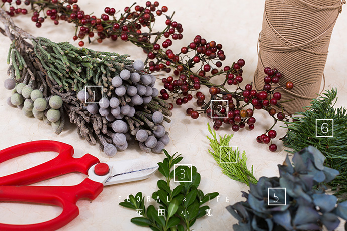 以自然的枝叶和果实作为素材,能创作出富有清新、自然气息的作品。如:侧柏、黄杨、珊瑚果等植物,能让作品变得