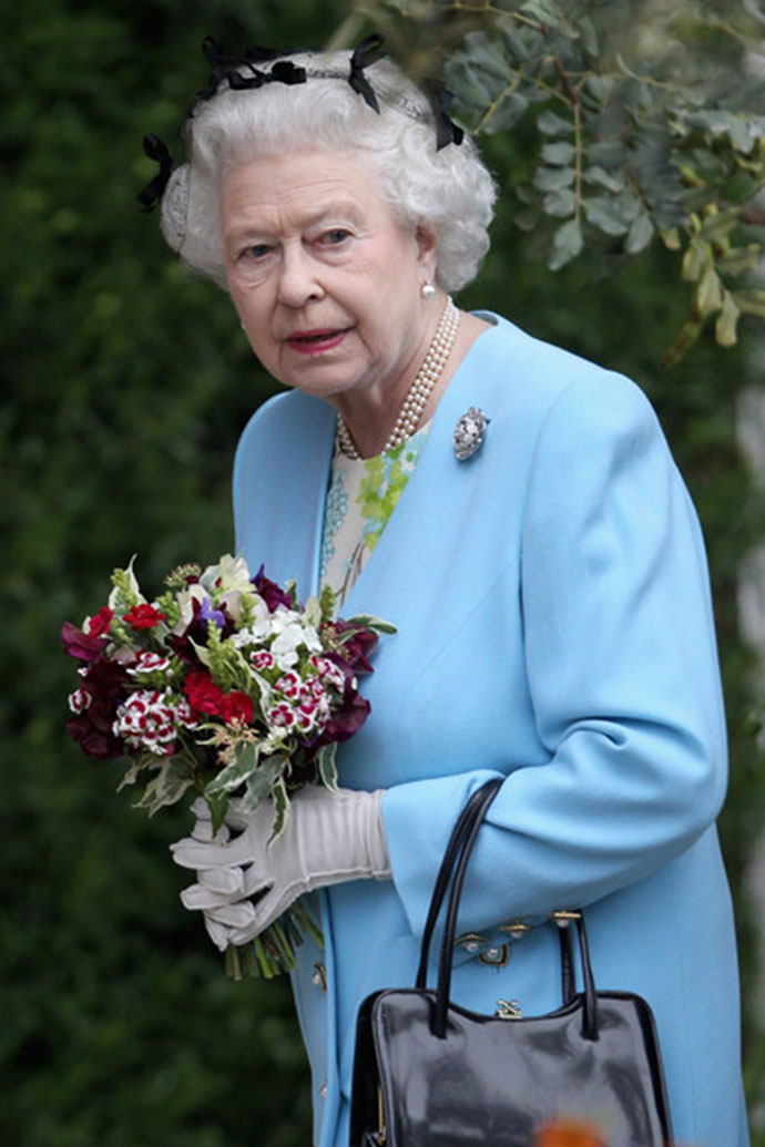 所周知,我们的女王殿下是不折不扣的调色盘奶奶。除了彩色套装和帽子,女王出街服饰标配:Launer手提包和Gucci乐福鞋。