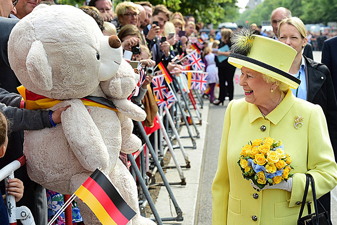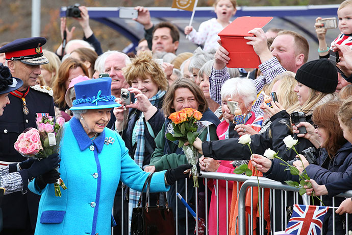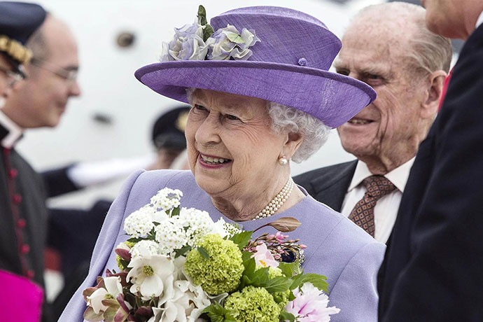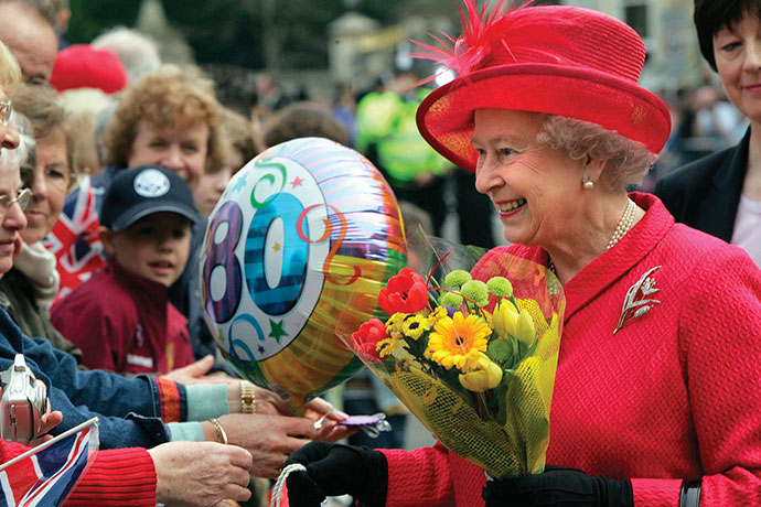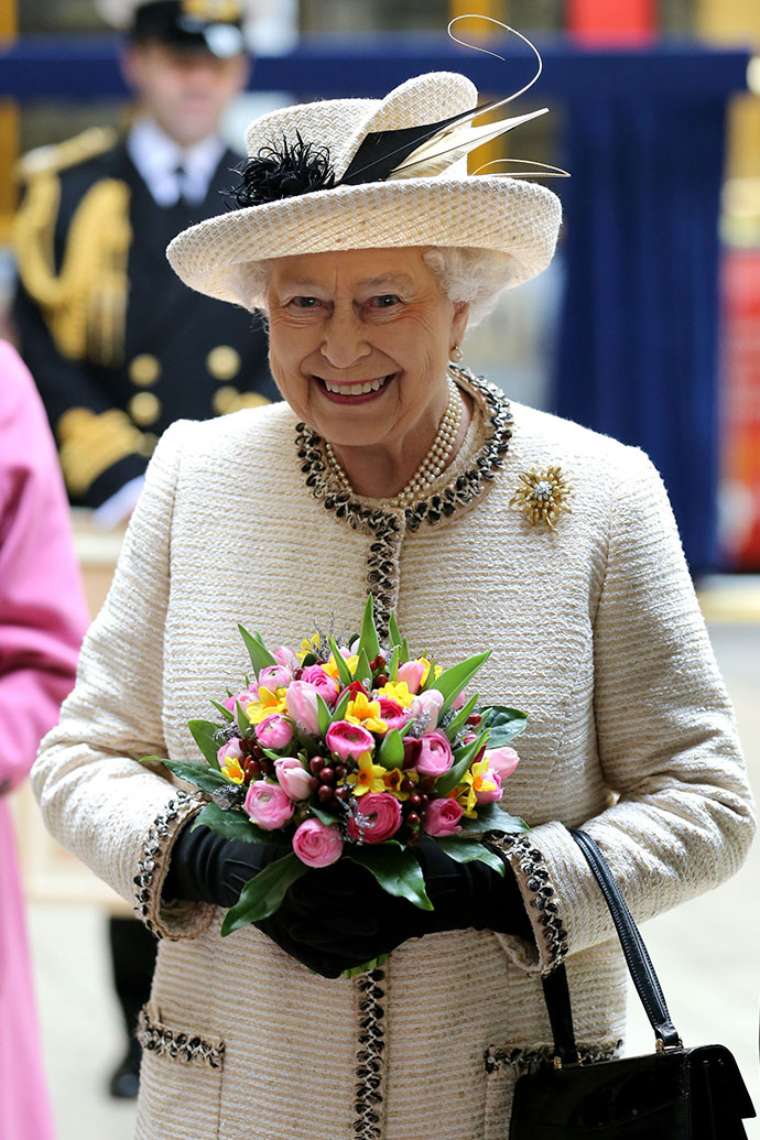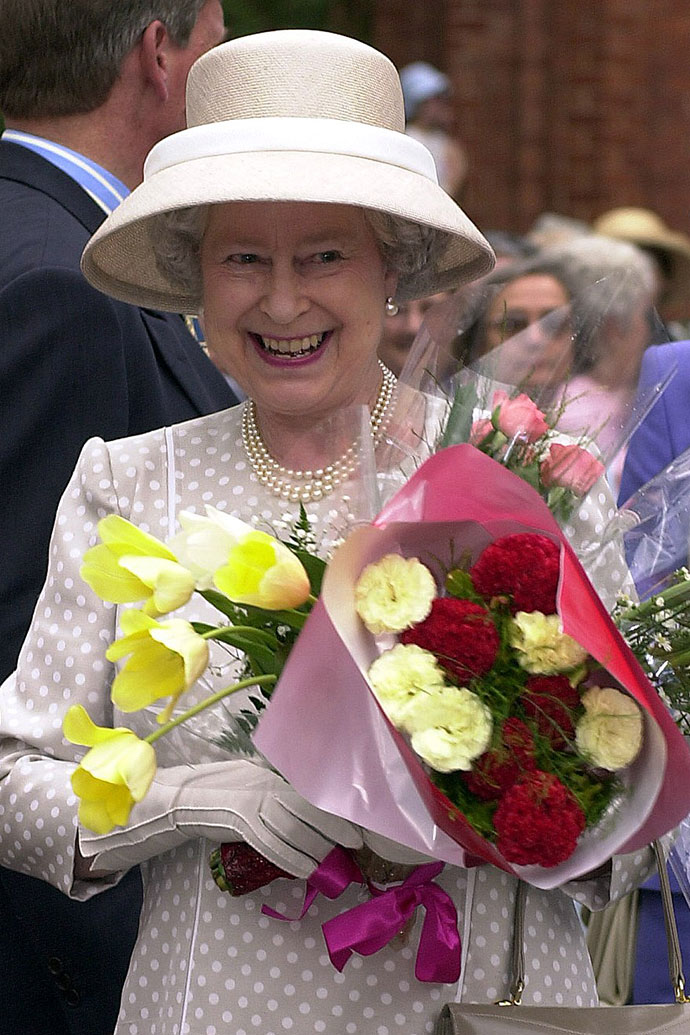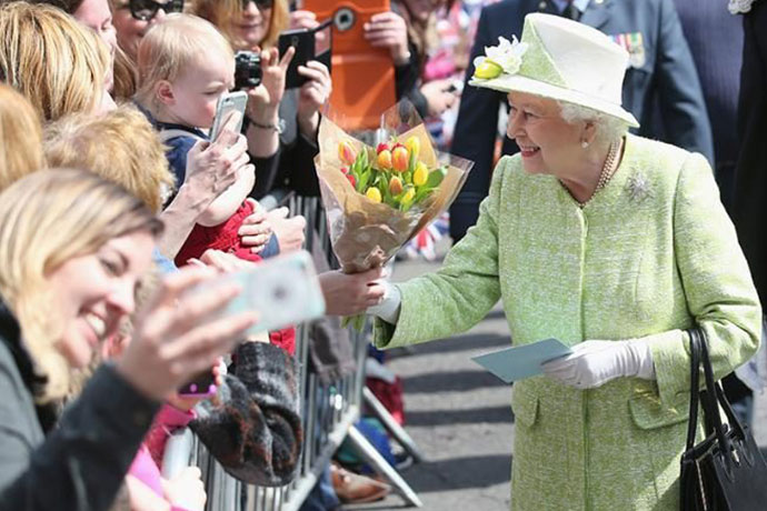 这位90岁超长待机女王深受国民的爱戴,出街永远是被人群和鲜花簇拥着。
