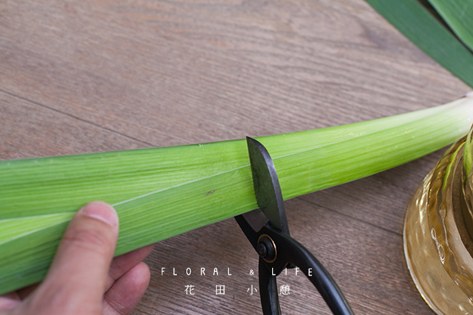 将盛开的龙胆插入鸢尾叶中,