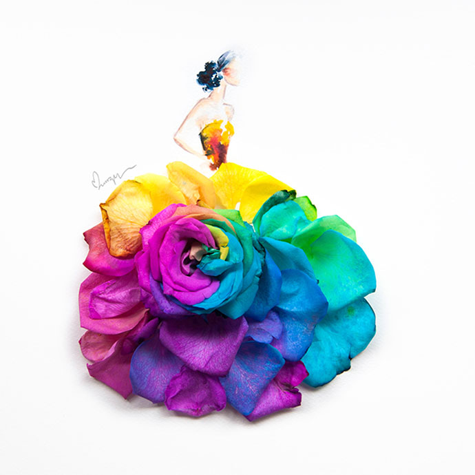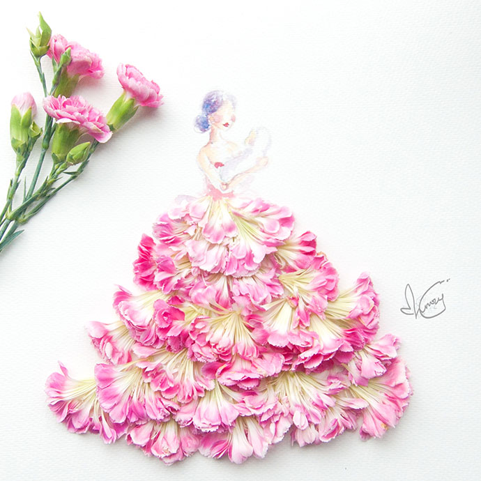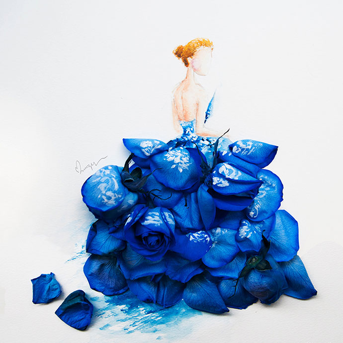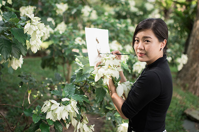 两年前,我开始创作一系列的花画作品,把它们分享给全世界爱花爱画的朋友。其实,一开始,我对花基本上是一窍不通,也不喜欢别人送花给我,觉得凋谢了很可惜。我后来到新加坡深造,在大学就读纯美术,当时也不太知道自己的创作风格是什麼,只懂误打误撞。