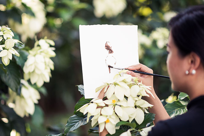 去年的春天,我做了人生中最大的决定,在朋友和家人的鼓励下,递上了辞职信,开始全职作画的旅程。这一年半载,我有幸到过数个国家和城市作画,布展,教学,讲课,在全世界交了很多朋友,也把我最简单的快乐和对生活的热忱与美感带给大家。我就是这样和花结缘的。但愿这小小的故事能给你一点启发和灵感。花虽然是我创作的其中一种素材之一,我也不会一辈子作花画,但我会永远爱著它。你和花,又有什么故事呢?