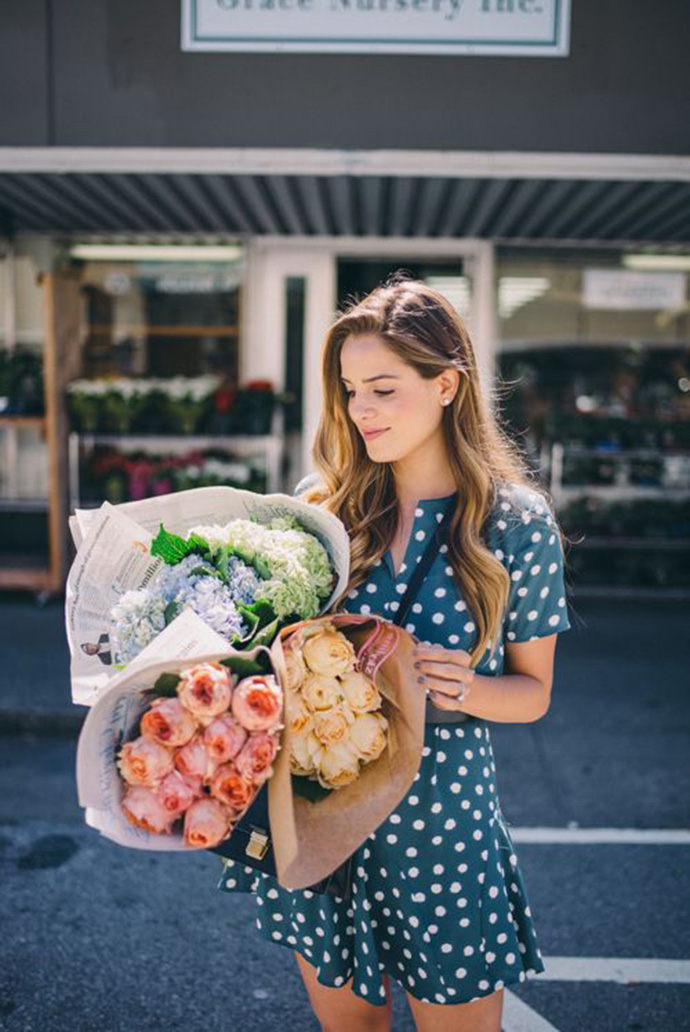 或者抱在臂弯里一大丛,挡住了她灿烂的微笑。五颜六色的鲜花总会带来好心情。不同于时装和配饰,因为花朵具有生命,当生命盛放的时候,会将美好的能量感染周围,就这样带去好运气。