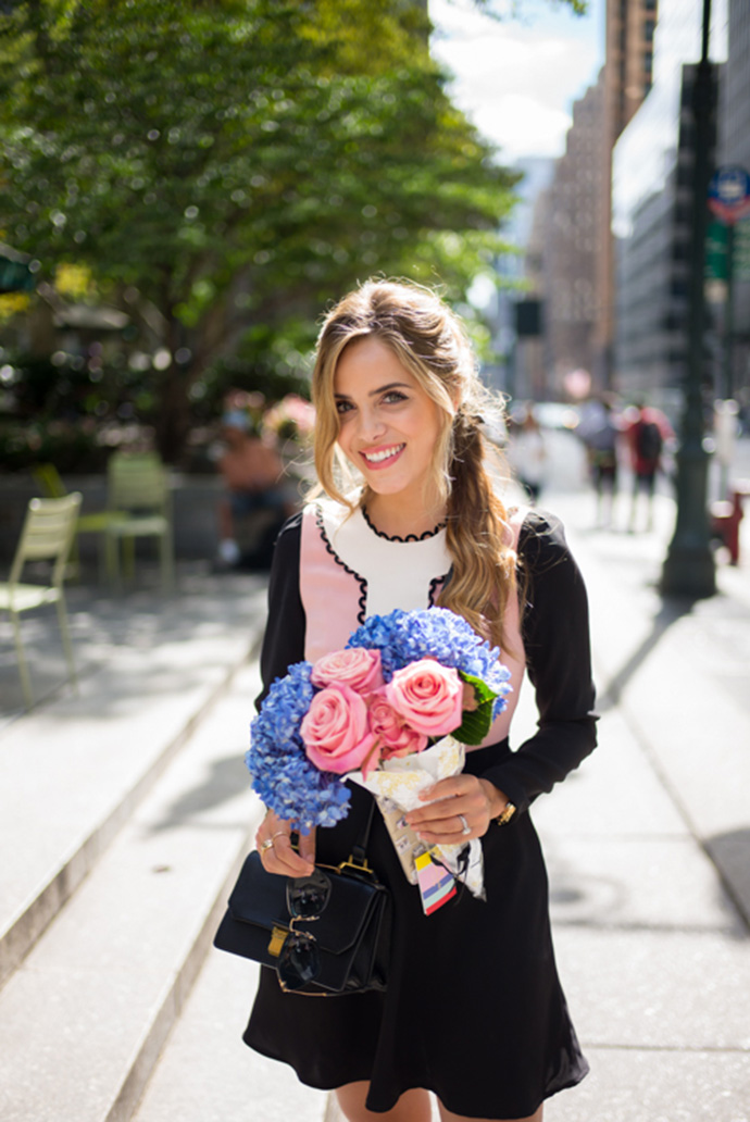 作为时尚偶像,收花就像家常便饭。街拍女王Olivia Palermo优雅气质更适合花束的点缀。