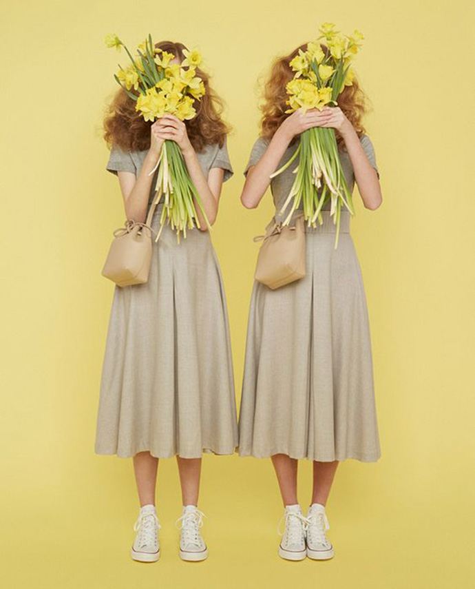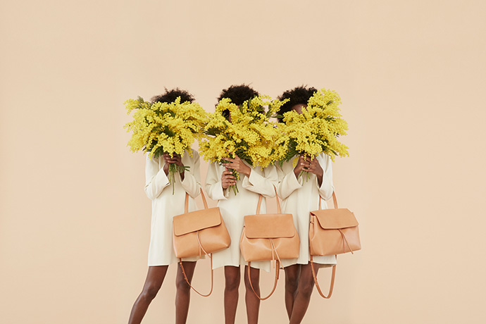 2016年最红的Mansur Gavriel,被称为明星有钱都买不到的包包。包包的官方推广照,每一张都离不开花束。每一款包包都搭配不同的花菜。