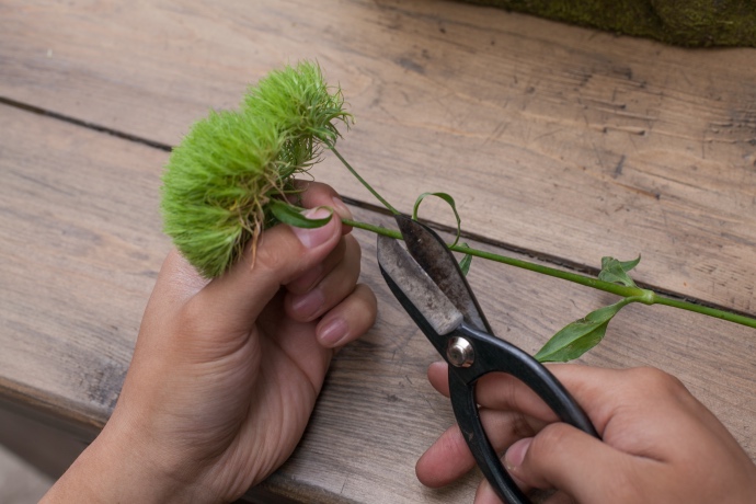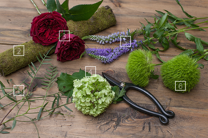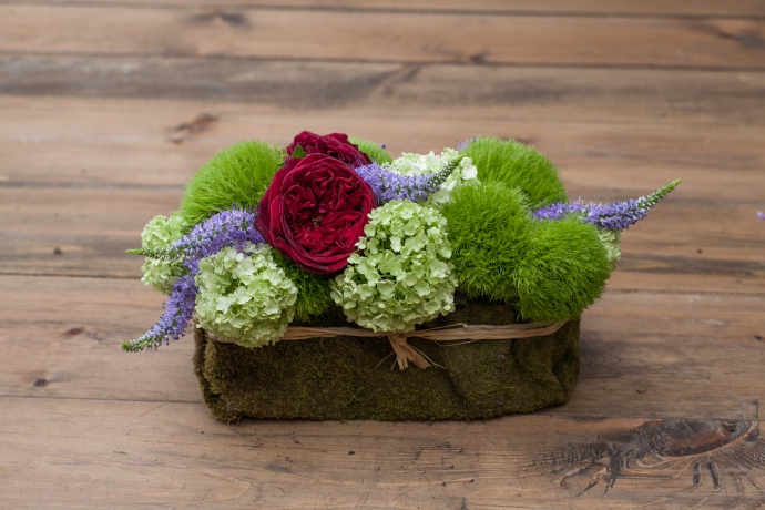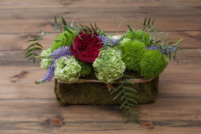 为了方便大家在花材搭配时的选择,花田小憩特设香味等级图谱,供大家在学习过程中了解更多植物的属性,以方便作品选择更适合的空间位置陈列。独特的外观往往能给花艺作品带来新颖别致的感觉,将苔藓作为花器的“外表”,呈现出了自然淳朴的特质。苔藓包裹于器皿四周并保持同样的高度,通过拉菲草进行缠绕捆扎,固定造型之余呈现出大自然的曼妙之意。