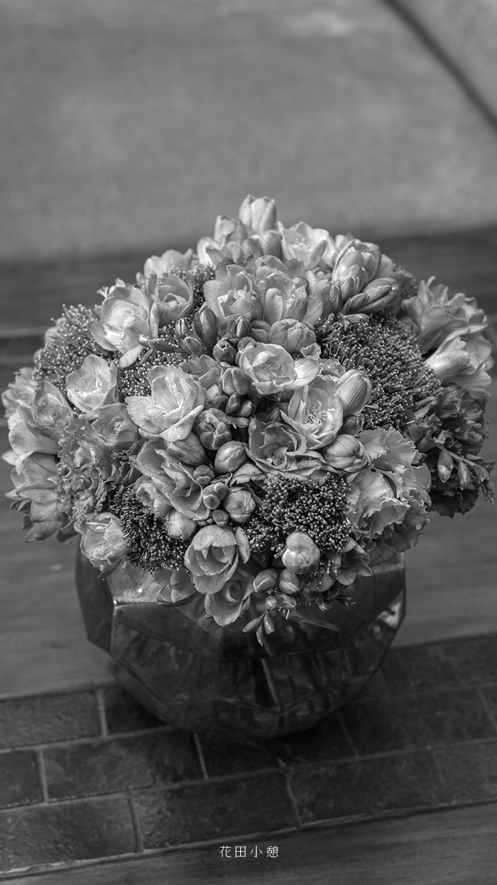 紫色的花束总是满含着高贵的气质,将香雪兰、龙胆、夕雾编织成束,静怡地放置于庭中一侧,仿佛是平淡的岁月悄然盛开,满庭淡雅绽放,绯紫一片,春意阑珊。